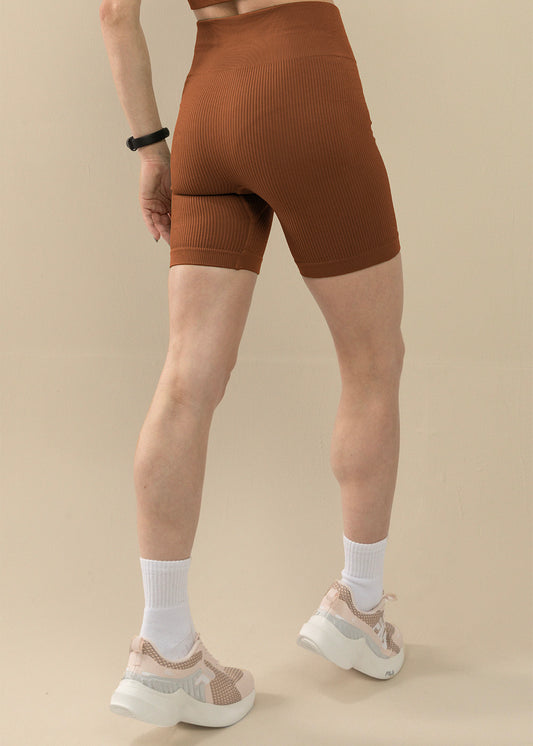 Conjunto Short Canelado e Top Alças Cruzadas Marrom