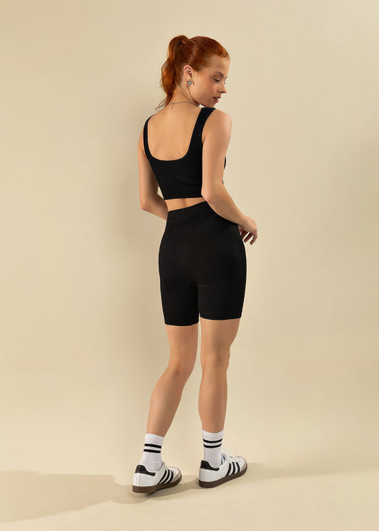 Conjunto Short Canelado e Top Alças Cruzadas Preto