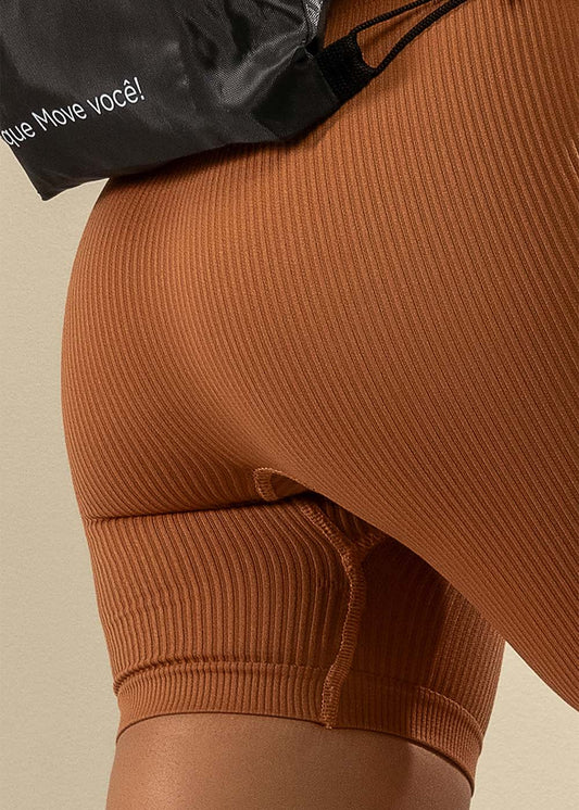 Short Fitness Canelado Marrom