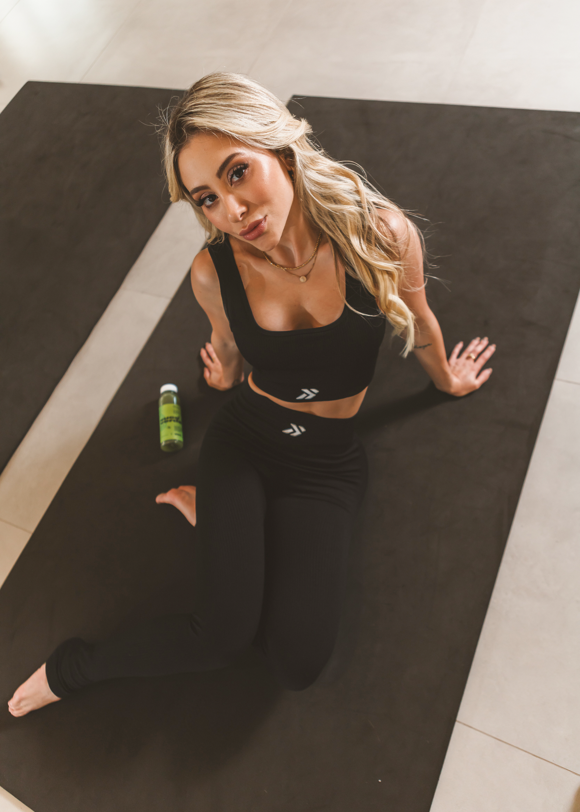 Conjunto Legging e Top Canelado Preto Logo Símbolo