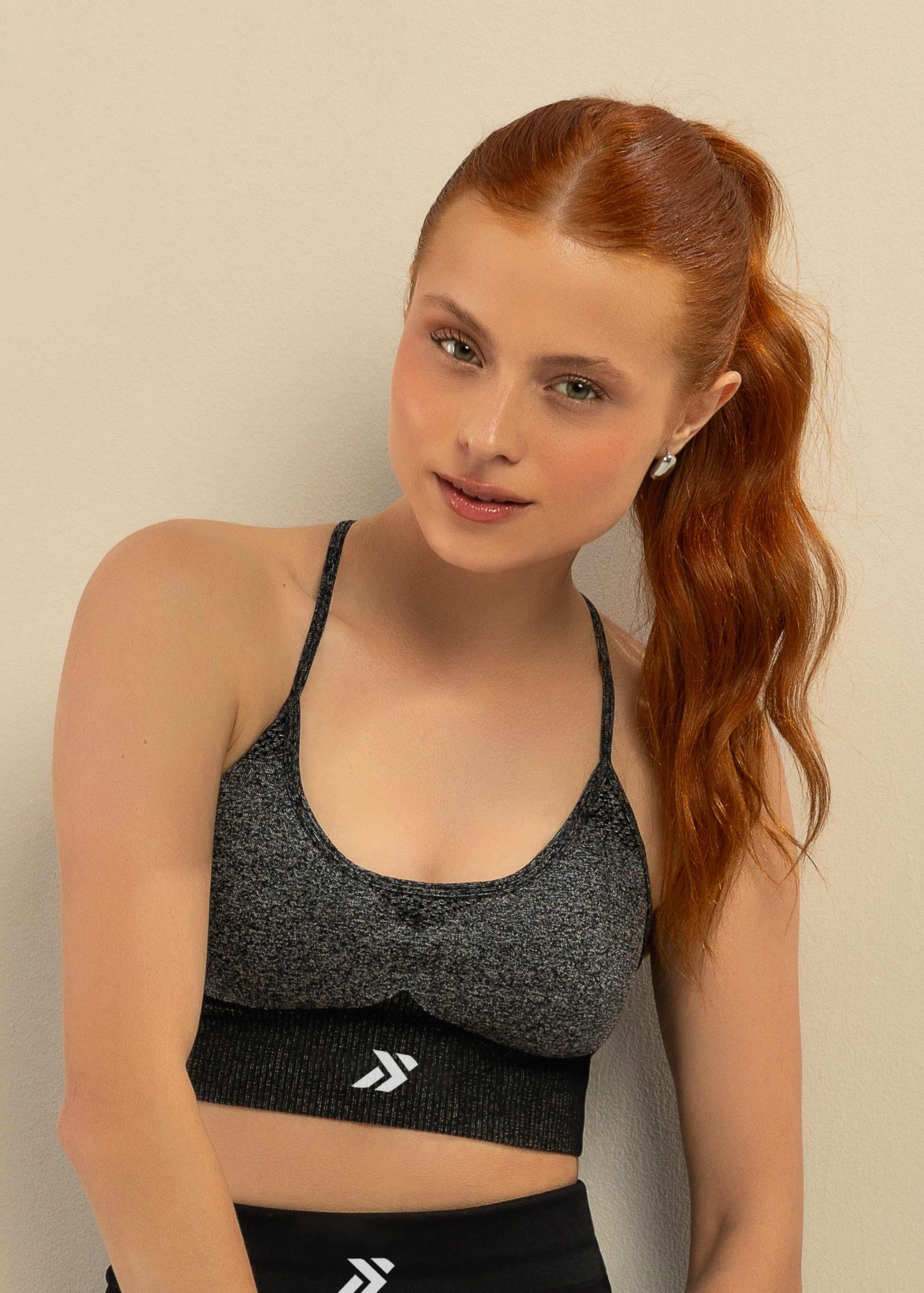 Tecido de construção encorpado com elasticidade equilibrada, que oferece melhorias médias, conforto prolongado e ajuste seguro ao corpo. A legging proporciona efeito modelador suave, enquanto o top com alças cruzadas garante sustentação e liberdade de movimento.