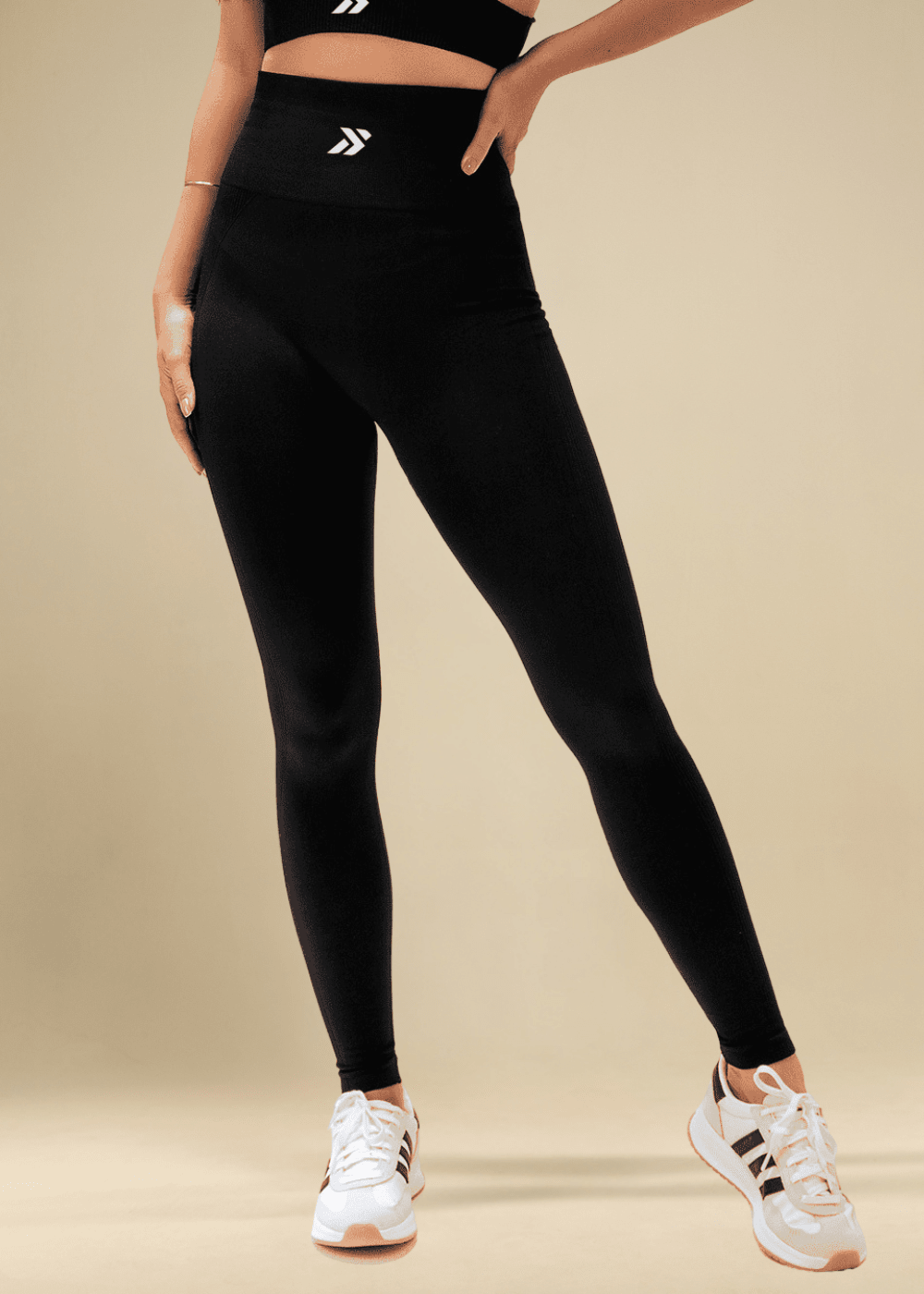 Legging Poliamida Canelada Preto - Logo Símbolo