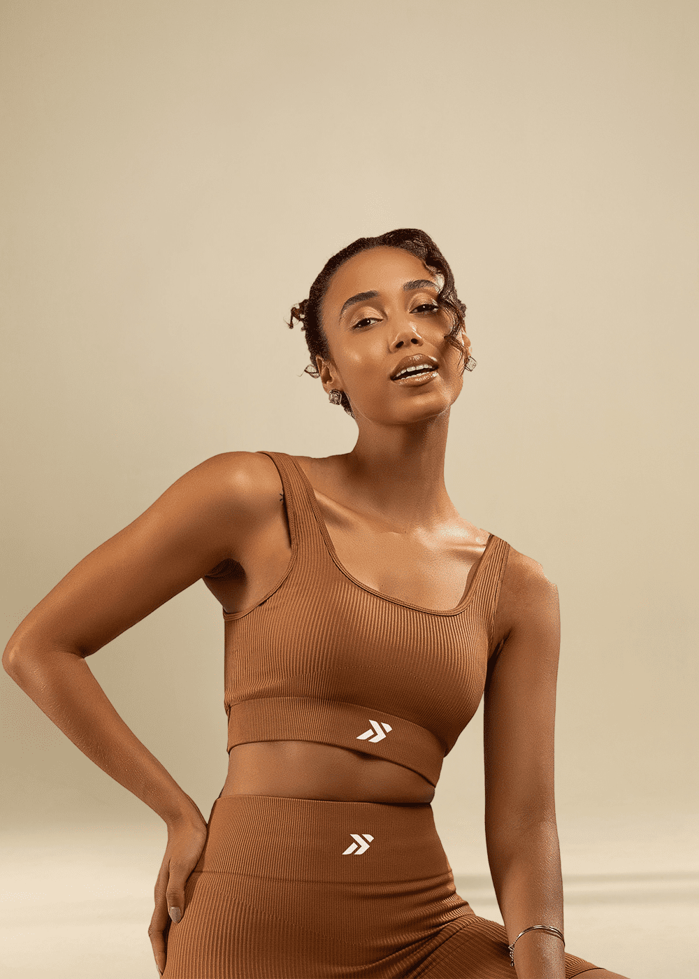 Top Poliamida Canelado Marrom - Logo Símbolo