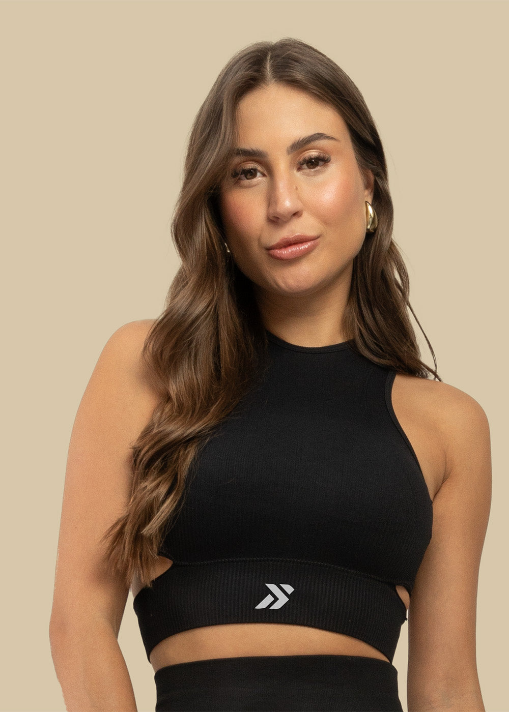 Top Poliamida Canelado Recortes Laterais Preto - Logo Símbolo